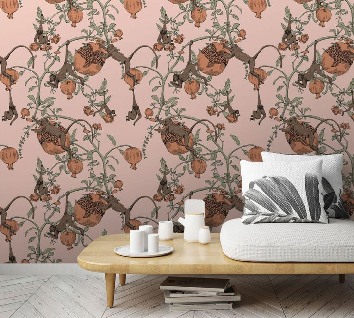 Fototapete mit Affen und Pflanzen, Rosa Floral 3.40 x 1.06 m