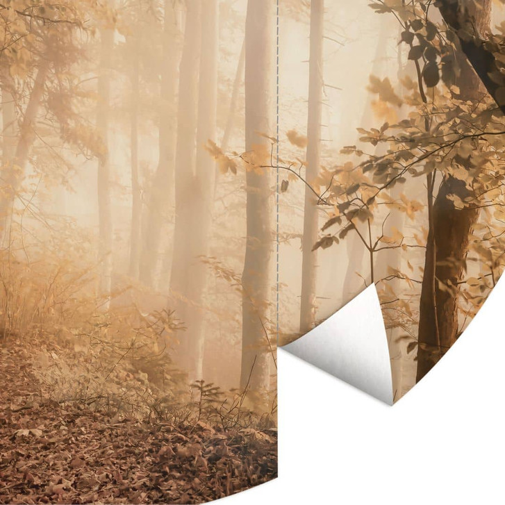 Fototapete Wald im morgendlichen Nebel - Waldtapete Rund - Maier - Selbstklebend/Vlies