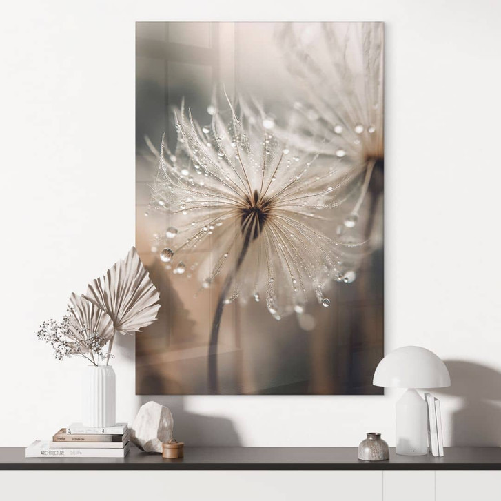 Zuhause ist der schönste Ort der Welt. Verleihe deinen Räumen mit diesem Wandbild eine reizvolle Note! Wenn du auf der Suche nach einem natürlichen Wandmotiv bist, ist der „Löwenzahn im Morgentau“ perfekt für dich. Die detailreiche Nahaufnahme von Treechild, die Romantik und Verträumtheit ausstrahlt, eignet sich wunderbar, um den Eingangs- und Wohnbereich sowie Büroräume stilvoll einzurichten. Und das Glasbild im Hochformat setzt mit seiner glänzenden Oberfläche ein besonders elegantes Highlight in deinen vier Wänden. Seine grauen Farben strahlen auf dem Material sehr intensiv und heben das Motiv hervor.