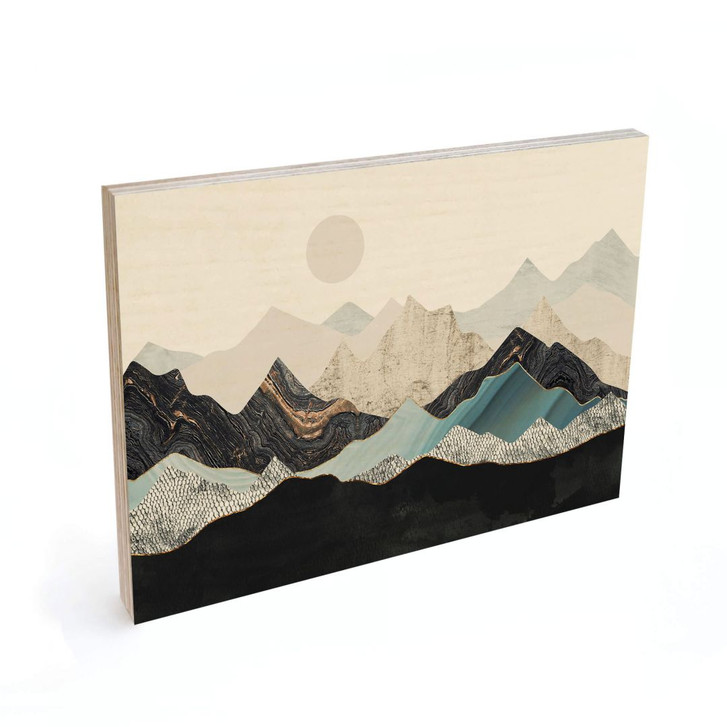 Holzbild Ruhige Berglandschaft in der Dämmerung - SpaceFrog Designs