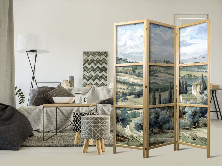 Japanischer Paravent, Raumteiler freistehend, Trennwand - Tuscan Landscape: Green Fields
