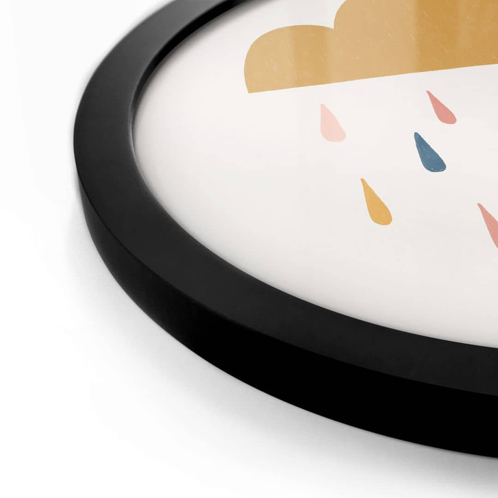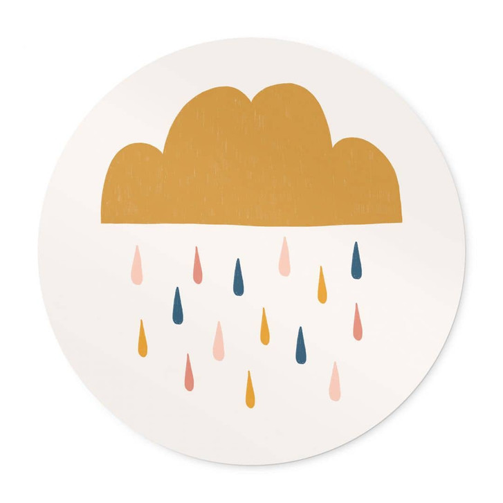 Dieses runde Poster von Menina Lisboa bringt mit seinem minimalistischen Design und den sanften Farben eine fröhliche und beruhigende Atmosphäre in deine Räume. Die goldene Wolke, von der Regentropfen in Rosa, Blau und Gelb fallen, steht im Mittelpunkt dieses bezaubernden Kunstwerks und wirkt durch ihre runde Form besonders harmonisch.