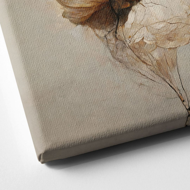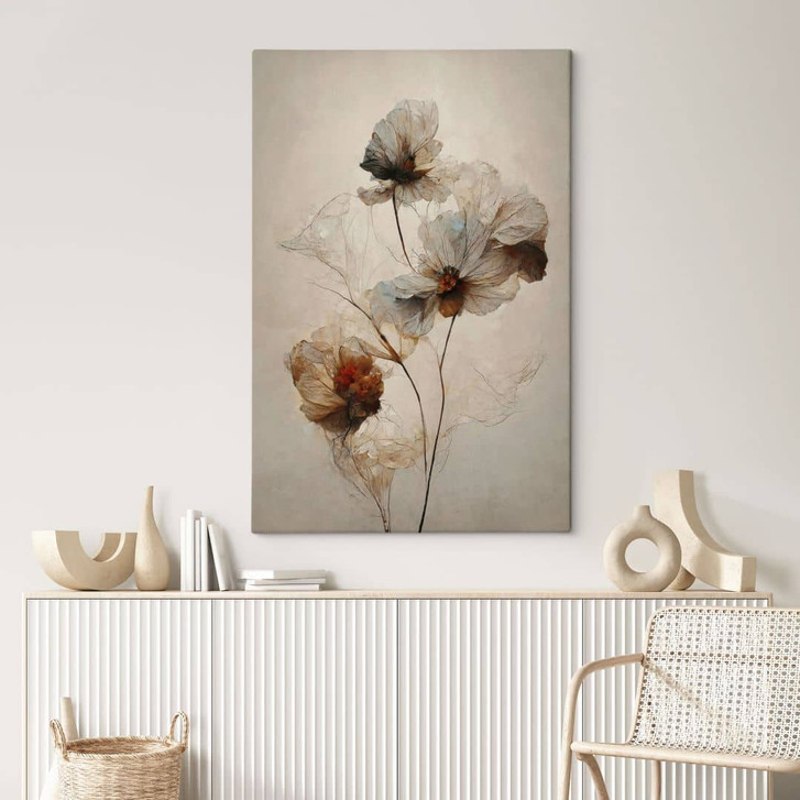 Die hochwertige Leinwandstruktur verleiht dem Kunstwerk einen warmen, natürlichen Look und verstärkt die Tiefe des Motivs. Der exzellente Druck bringt die feinen Linien und sanften Farbverläufe besonders gut zur Geltung. Die Blumen scheinen sich sanft im Raum auszubreiten und schaffen ein elegantes, zeitloses Ambiente.