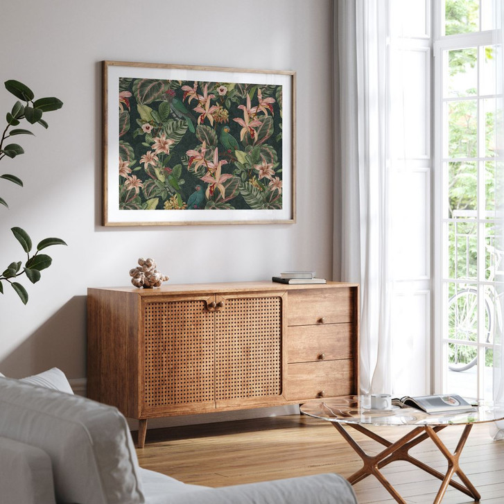 Natur Poster Dschungel mit Papageien Nachtgrün - Bloomery Decor