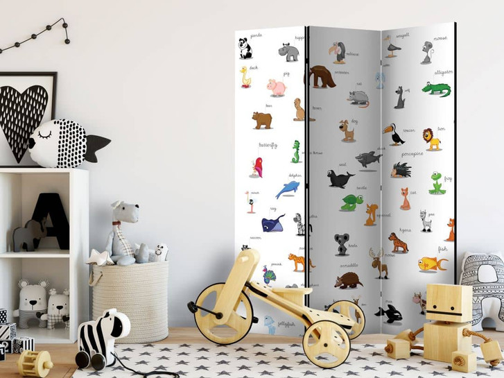 Paravent, Raumteiler freistehend, Trennwand - Fröhliche Tiere (für Kinder)