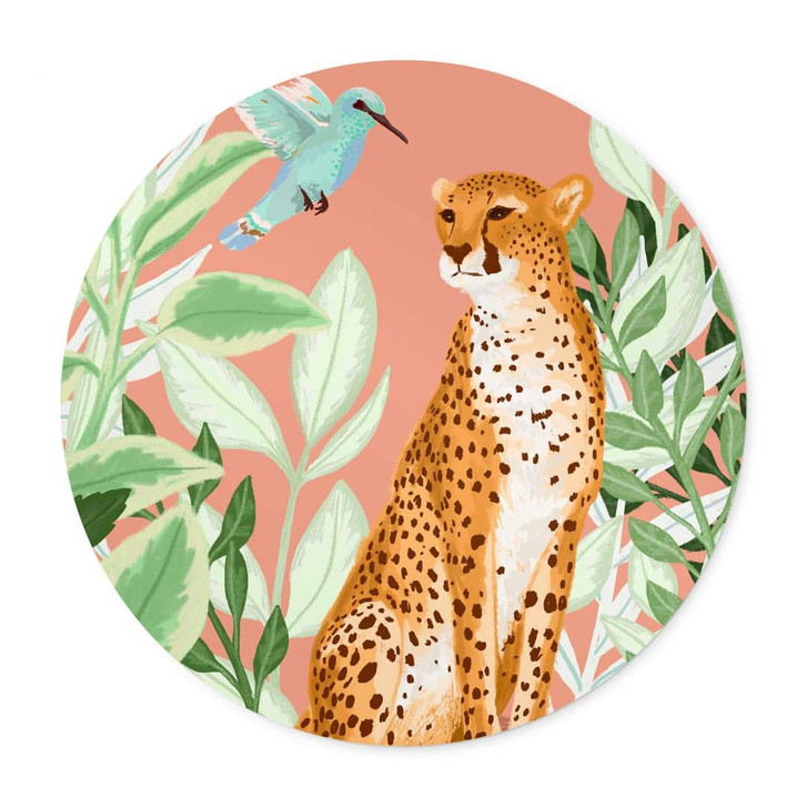 Willkommen im exotischen Dschungel: Wild wachsen hier die Pflanzen, hübsche Blumen ragen empor und wer genau hinhört, vernimmt die Laute verschiedener Tiere. Der Gepard hat hier seinen Platz im dichten Wald und schaut neugierig in die Ferne. Die liebevoll gestaltete Naturillustration für Kinder hebt mit ihren leuchtenden Farben sofort die Stimmung. Auch wenn es draussen kalt und nass ist, sorgen die Waldbewohner auf diesem Bild für eine angenehme Atmosphäre im Haus. Ein kreatives Poster, das Kinder lieben werden.