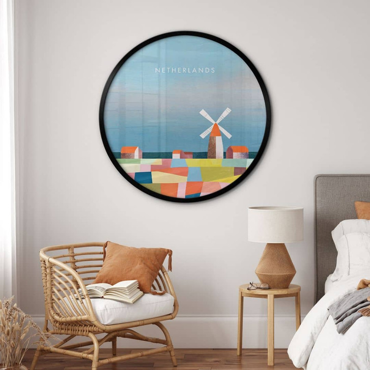 Es ist Zeit für einen neuen Look. Mit diesem Wandbild lassen sich das eigene Zuhause und das Büro besonders eindrucksvoll gestalten. Für Liebhaber der Niederlande ist dieses kreisrunde Motiv aus unserer Serie Städte & Reisen ein Muss. In den Niederlanden erwarten dich weite, grüne Landschaften, zahlreiche Tulpenfelder, interessante Sehenswürdigkeiten und historische Windmühlen. Das Reisemotiv von Henry Rivers ist eine Hommage an ein Land, das für seine Natur, einzigartige Kultur und Gastfreundschaft bekannt ist. Er malte die Felder in leuchtenden Farben und abstrakten Formen, die die Vielfalt des Landes symbolisieren. Der blaue Himmel hingegen strahlt Ruhe, Beständigkeit und Idylle aus. Mit diesem Kunstdruck holst du dir einen Hauch holländisches Flair nach Hause! Wir bieten dieses Motiv in verschiedenen Ausführungen und in unterschiedlichen Grössen an.