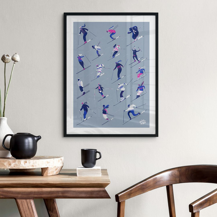 Dieses Poster von Mark Harrison bringt die Freude und Dynamik eines Wintertages auf der Piste in dein Zuhause. Mit seinen charmanten Illustrationen von Skifahrern in verschiedenen Stilen und Posen lädt es dich ein, die Vielfalt und den Humor dieser Wintersportwelt zu entdecken.