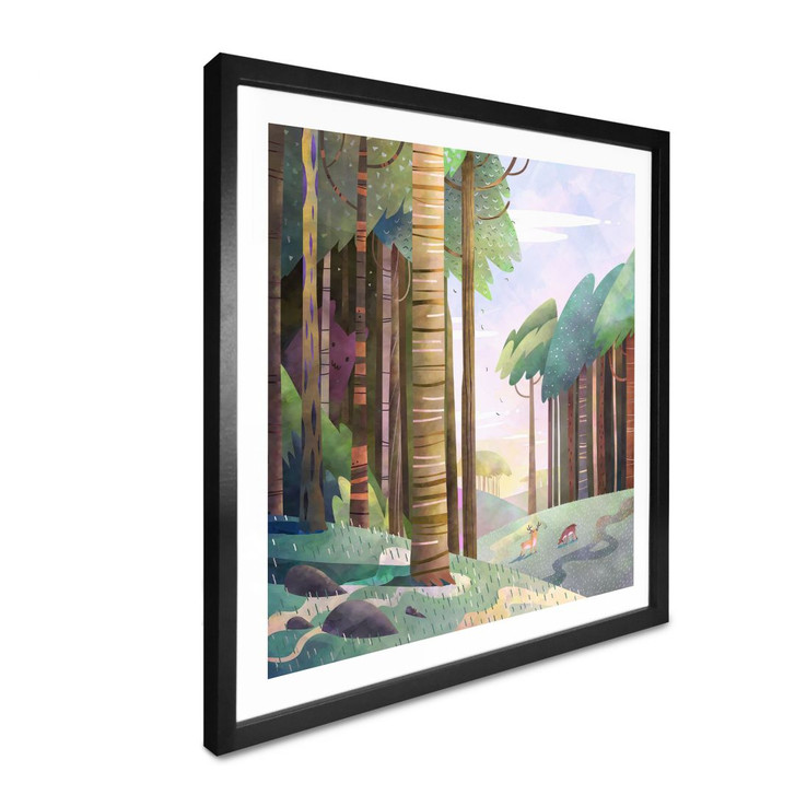 Poster Sonniger Wald mit Hirsch - DigitalArtsi