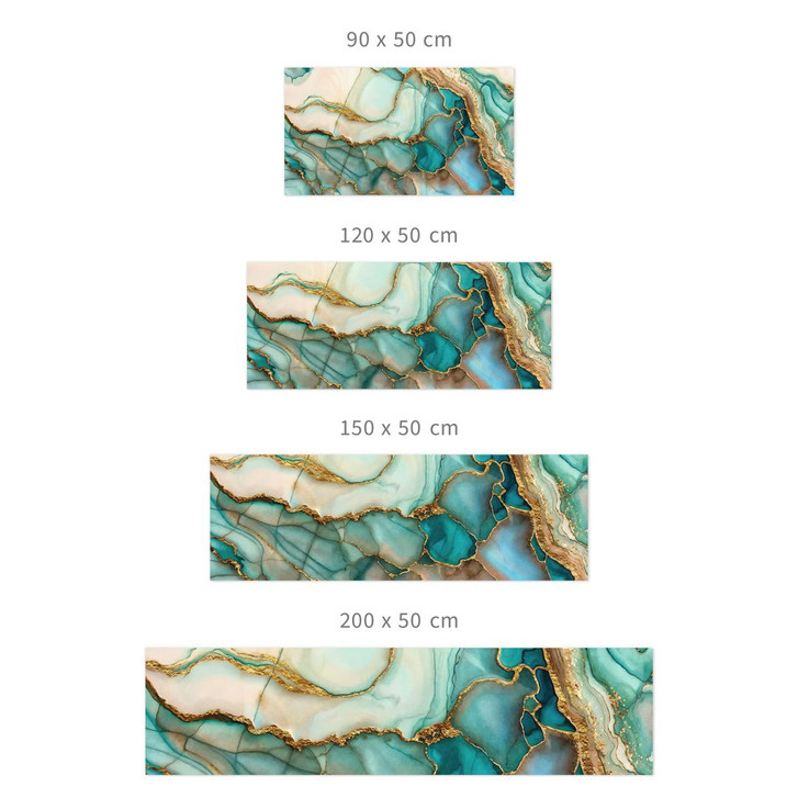 Diese selbstklebende Küchenfolie vereint Eleganz und Funktionalität in einem einzigartigen Design. Die harmonischen Türkistöne und goldenen Highlights erinnern an luxuriösen Marmor und setzen ein faszinierendes Highlight in deiner Küche. Mit ihrem brillanten Farbenspiel und den organischen Strukturen wird Ihre Küchenrückwand zu einem echten Hingucker.