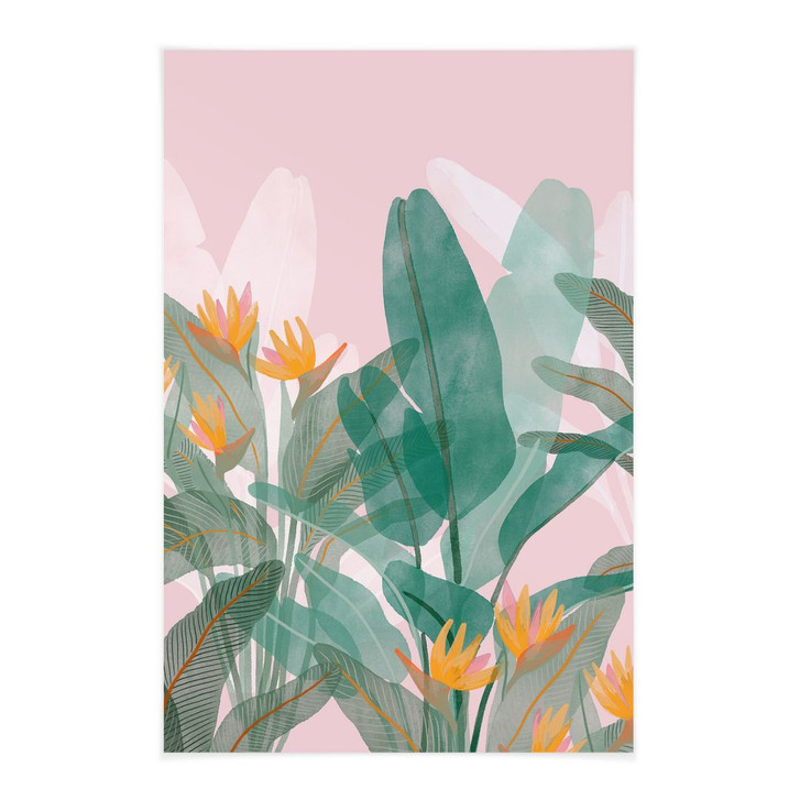 Stoffbild Botanische Illustration in Grün und Rosa - Goed Blauw
