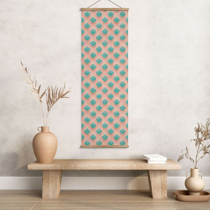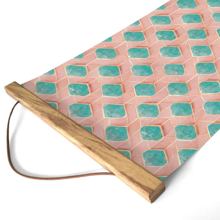 Stoffbild in stilvollem Türkis-Rosé-Design mit optionalem Holzrahmen