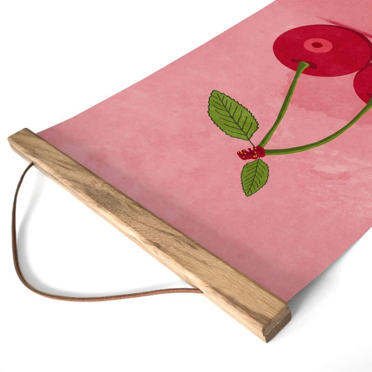 Mit diesem einzigartigen Kunstwerk bringt die Künstlerin Raissa Oltmanns ein verspieltes und doch bedeutungsvolles Motiv in dein Zuhause. Zwei leuchtend rote Kirschen mit zarten grünen Blättern setzen ein starkes Statement – eine Mischung aus Sinnlichkeit, Selbstbewusstsein und weiblicher Stärke. Der zartrosa Hintergrund verstärkt die harmonische Ästhetik und macht dieses Bild zu einem zeitlosen Hingucker.