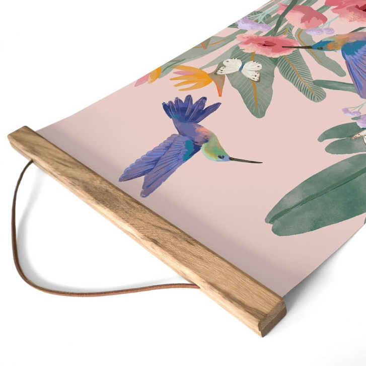 Stoffbild Zwei Kolibris auf der bunten Blumenwiese - Goed Blauw