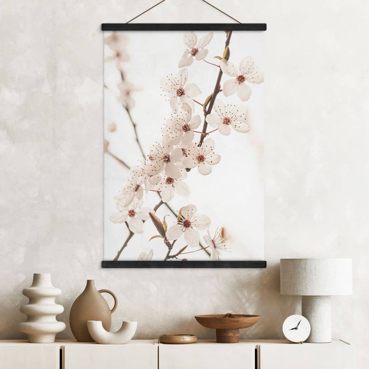 Stoffbild Zweig mit weissen Kirschblüten - Sisi & Seb