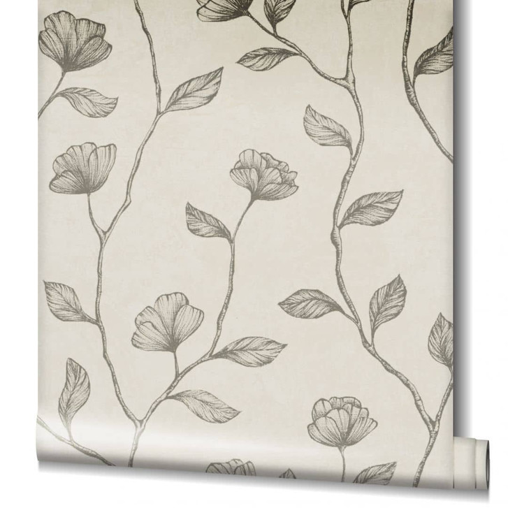 Vliestapete in schönem Beige und Gold für Wohnzimmer, Schlafzimmer oder Küche. Die Tapete sorgt mit Ihrem Floral Look für ein modernes und angenehmes Raumgefühl.