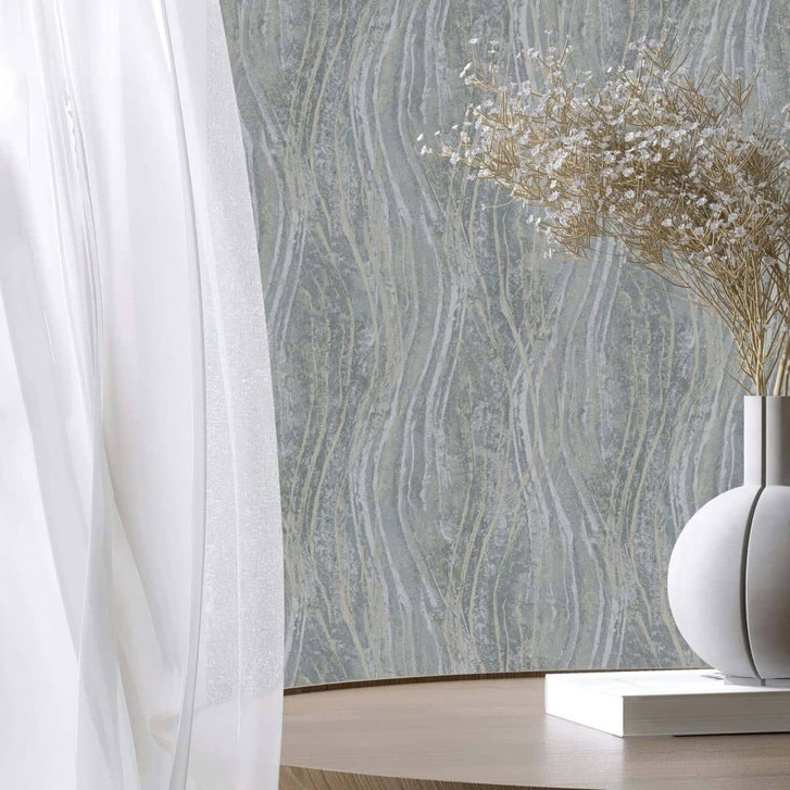 NOVAMUR NAOMI - Moderne Vliestapete mit grafischem Wellenmuster in Grau.