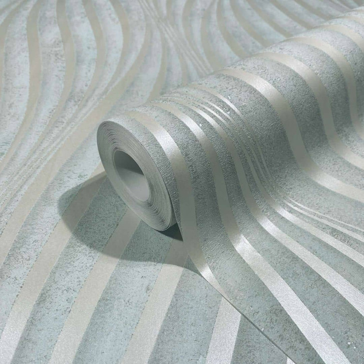 Vliestapete mit geschwungenen, glänzenden grauen Streifen
