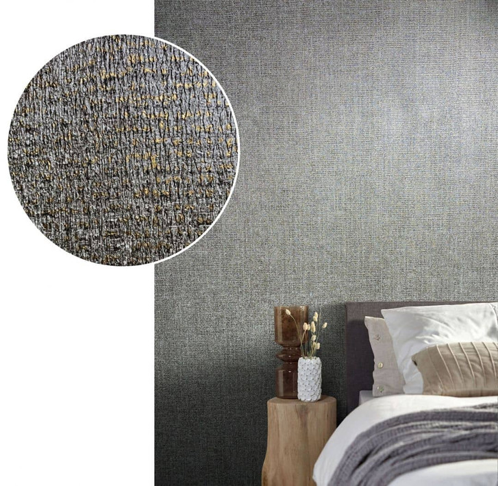 Vliestapete in kräftiger Textilstruktur in Grau und Silber