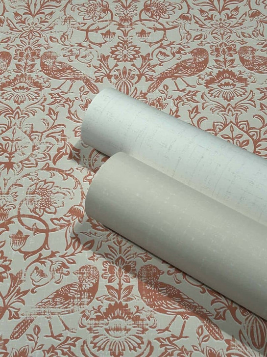 Heritage - Elegante Vliestapete mit floralem Design in Beige und Rot.