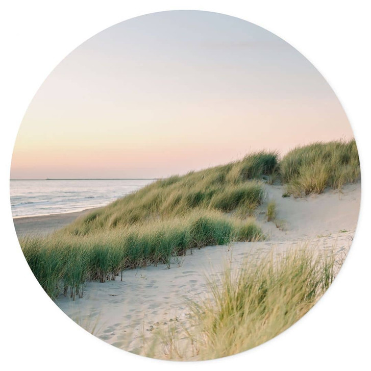 Hol dir die Schönheit der niederländischen Küstenlandschaft nach Hause – mit unserem runden Wandsticker, der die friedliche Szenerie der Dünenlandschaft auf moderne und stilvolle Weise präsentiert. Der Wandsticker zeigt sanft geschwungene Dünen, an denen saftiges Gras bis zum Horizont wächst, während der Sonnenuntergang den Himmel in zarte Pastellfarben taucht. Dieses Motiv strahlt Ruhe und Gelassenheit aus und bringt ein Stück Natur direkt in deine Wohnräume.