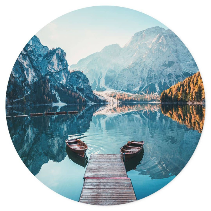 Der runde Wandsticker mit dem atemberaubenden Motiv des Pragser Wildsees in den Dolomiten ist ein echter Hingucker, der die Ruhe der Natur in dein Zuhause bringt. Die majestätischen Berge, das kristallklare Wasser und die warme Herbstkulisse spiegeln eine harmonische Balance wider, die jedem Raum eine ganz besondere Atmosphäre verleiht.