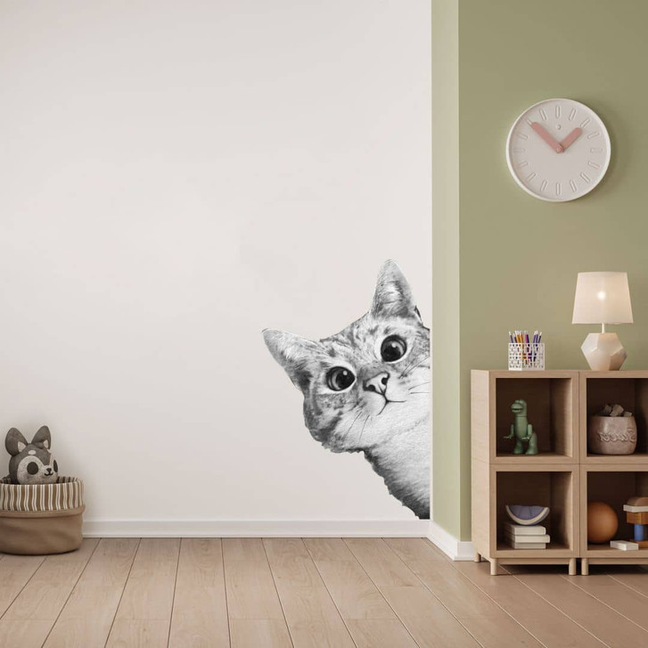 Neugierige Katze, die um die Ecke schaut, für stilvolle Wände