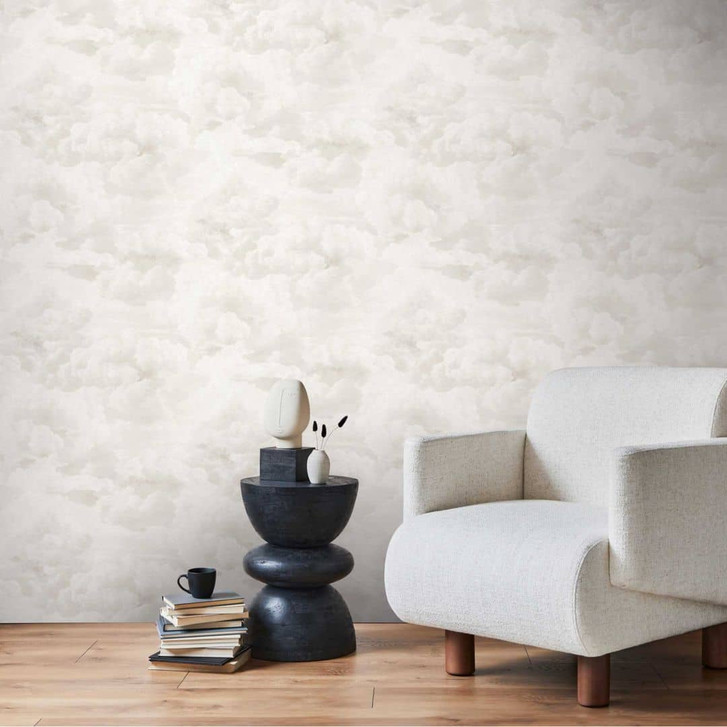 Michalsky 6 - Luftige Vliestapete mit zarten Wolken in Weiß und Creme.